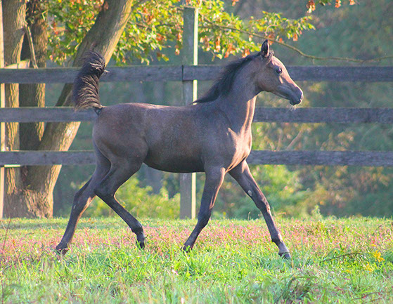 2014 heterozygous black purebred Egyptian Arabian filly.