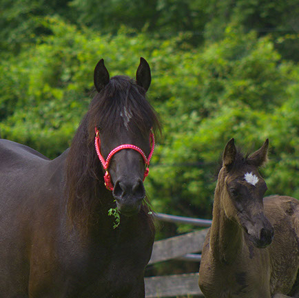 The mare is offered for sale with her 2018 black Egyptian filly at her side. "Ask about a three in one package which includes this lovely mare with the black filly at her side and bred to Caravaggio pma for a 2019 foal.