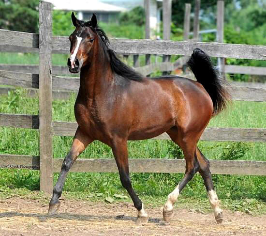 It doesn't get any better than this...Imperial breeding at it's best! Noble Safinaz is a big, correct bay colt that is a bold mover and will definitely be a superior stallion and show prospect for the discriminating buyer. Beautiful face, awesome hip and topline -- this colt will also halter. New yearling photo above was taken on July 25, 2010.