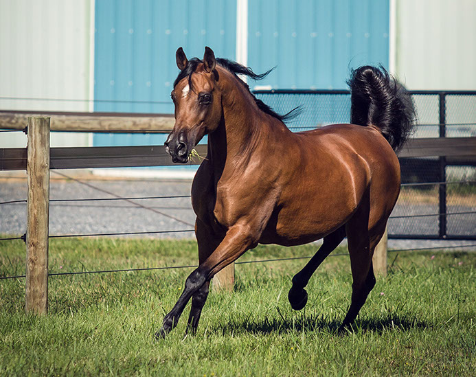 A spectacular mare and dynamic mover that is regretfully offered for sale as we move towards an exclusively straight Egyptian breeding program. Wonderfully bred, Autumn is ready for a career in the show ring or would be an amazing addition to a broodmare band. Double Huckleberry Bey++!