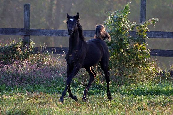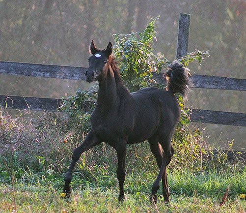 2014 heterozygous black purebred Egyptian Arabian filly.
