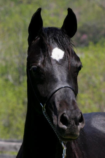 Hazarah is a pure in strain homozygous black daughter of Haziz Halim! She is Al Khamsa, has a large soft eye, nice neck and THE most astonishing TROT. She can help your breeding program by bringing some movement and a topline into the foals she produces. Hazarah is a sweet mare that is easy to handle and is a loving mother to her foals.